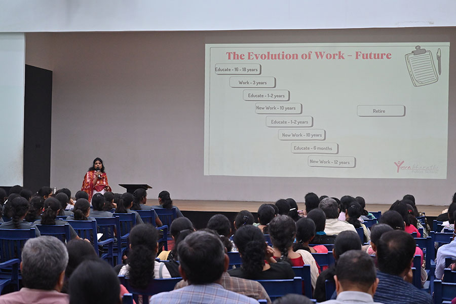 To gauge student interests, the Guidance and Counseling Department of Yuvabharathi Public School administered a standardised diagnostic test on students across all sections of grade 10. Ms. Latha Jayaraman, Career Counsellor, conducted a workshop for the parents of grade 10 students on the 12th of December, 2025 on :