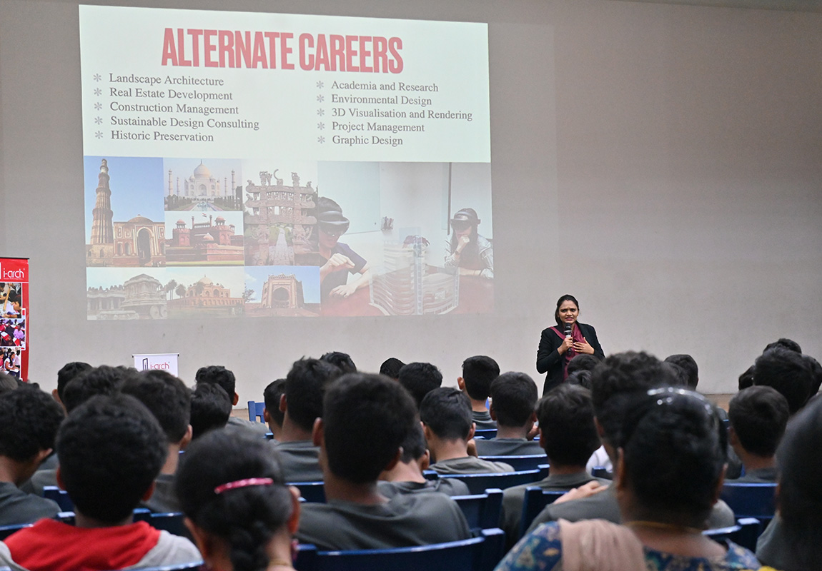 As part of Yuvabharathi's ongoing career guidance initiatives, the Career Guidance Cell organised an Orientation Programme by I-Arch, India’s No. 1 NATA/JEE (B.Arch.) Coaching centre, for grade 11 and 12 students from the Science Stream on the 28th of August, 2025, at the auditorium. The orientation programme aimed to familiarise students with the field of architecture, its evolving practices, and the academic pathways required to pursue it.