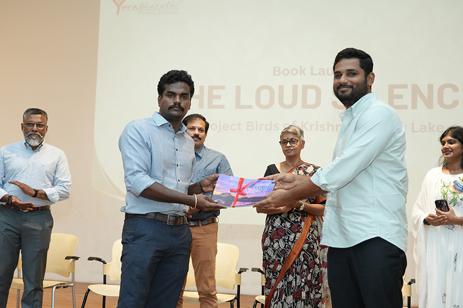 'The Loud Silence' is an account of a yearlong student-led project titled 'The Birds of Krishnampathy Lake', completed under the guidance of Mr. Sathish Ramamoorthy, Founder of TREE NGO. The students of the school's Photography Club, Shutterbugs, mentored by teachers Mr. A. Abdul Rahim and Mr.R. Dineshkumar, took photographs and documented the birds spotted at the lake and their habitats during the 2024-25 school year. They spotted 106 bird species and studied the environmental deterioration of the lake, which led to the action of spreading awareness about conservation. The book features photographs of the avian diversity of Krishnampathy Lake, along with a detailed account of the project.