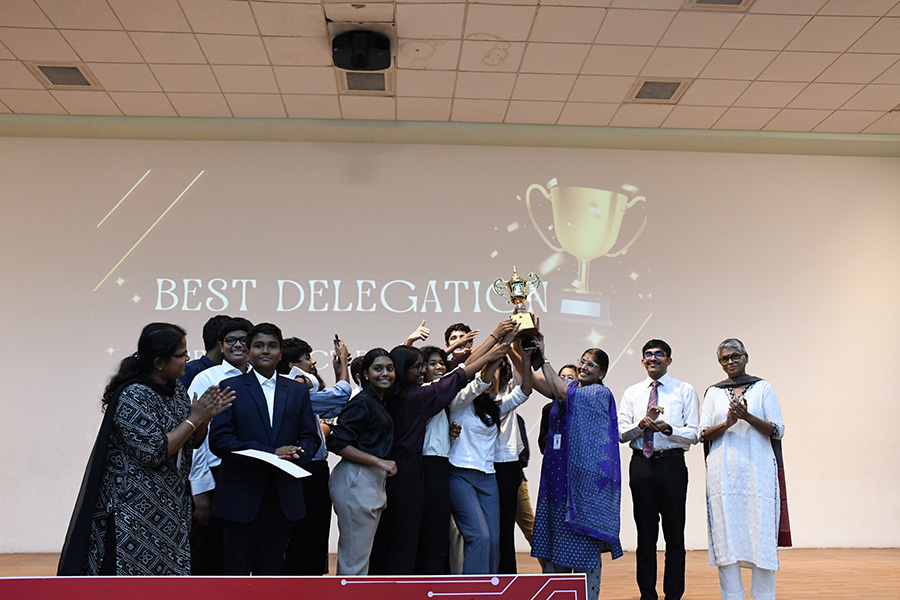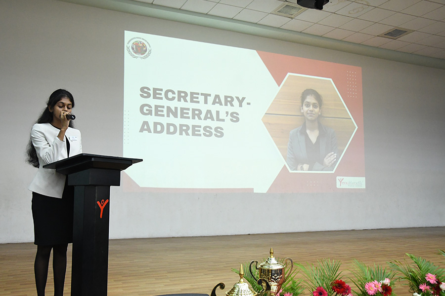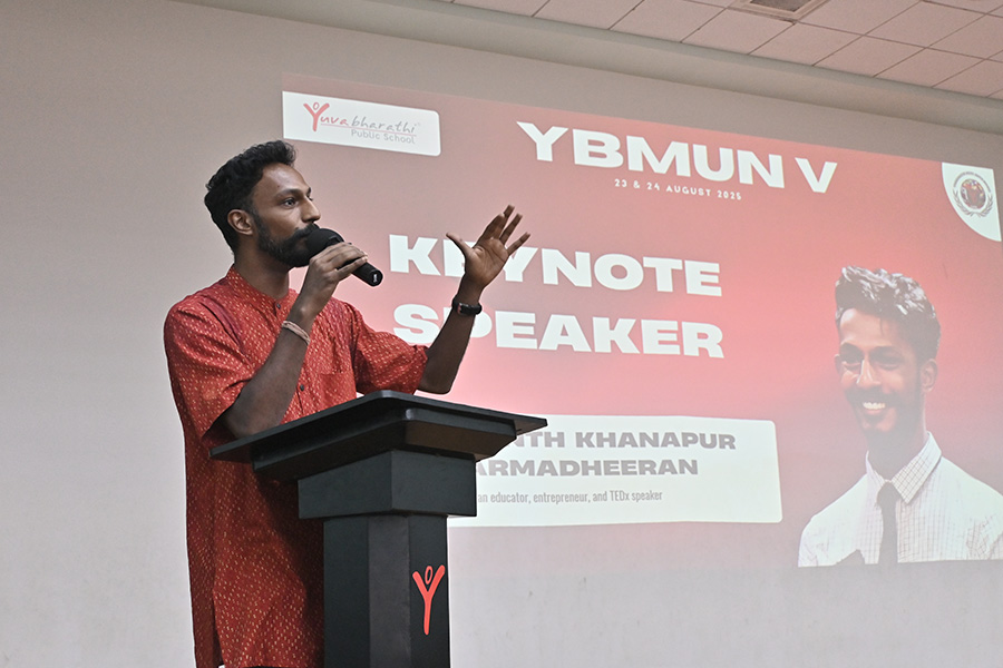 This two-day student-led conference began with an Opening Ceremony, where Mr. Sidhaanth Dharmadheeran, the Keynote Speaker, Ms. Nehaarika Sanjeev, a Member of the Management, and Principal Ms. Geetha Jayachandran lit the lamp and inaugurated the event. The gathering was warmly greeted with a welcome address by S. K. Ajay Jagath, the School Prefect and YBMUN V's USG of IT. The Principal, in her address, highlighted the significance of Model United Nations as a platform for students to develop leadership and 21st-century skills based on the theme of YBMUN V. A noteworthy highlight of the ceremony was the Leadership Forum with Mr. K. Annamalai, who inspired the young delegates through his insights. He emphasised that representing a country in a Model United Nations forum means realising that a single problem rarely has a single solution. He elaborated on the importance of ethical leadership in the era of AI and outlined the ethical leadership dilemmas for the younger generation to ponder. He answered the questions posed by students, inspiring them to lead with clarity and decisiveness. The session was followed by an engaging Keynote Address by Mr. Sidhaanth Dharmadheeran, Founder of Ashwa Education. He expounded that engaging diligently in MUN not only sharpened his debating and leadership skills but also changed the way he perceived various aspects of life. The screening of the YBMUN Chapter V trailer provided a glimpse into the committees, which was followed by an address from the Secretary-General, S.A. Kavya. The opening ceremony left the delegates inspired and eager to embark on two days of constructive debate, diplomacy and collaboration to find the common ground and resolve global issues. The first day ended with the socials and the second day culminated with the closing ceremony, graced by Yuvabharathi's alumni, Dr. R. V. Tharun Kumar and Mr. Suraj Narayanan, both prominent MUN participants during their school days. The chairpersons of various committees presented the awards to the delegates of their respective committees. The PSBB Millennium School, Coimbatore, received the Best Impact Delegation Award, while Yuvabharathi Public School clinched the Best Delegation - Leadership in Diplomacy Award.