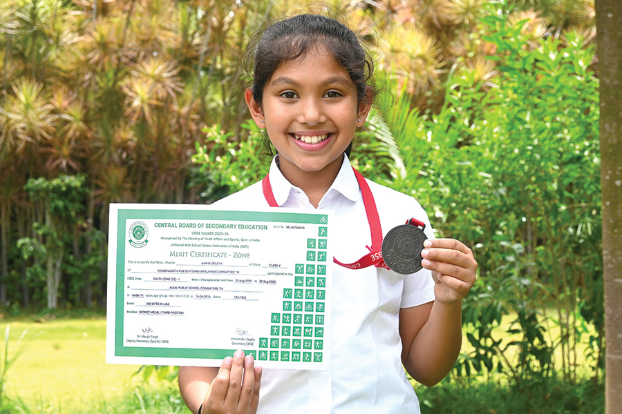 - Aanya Srijith of Grade 5 secured a Bronze medal in the 300m Inline in the under-11 category