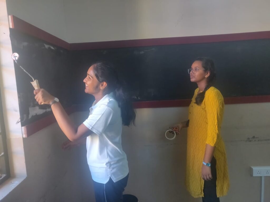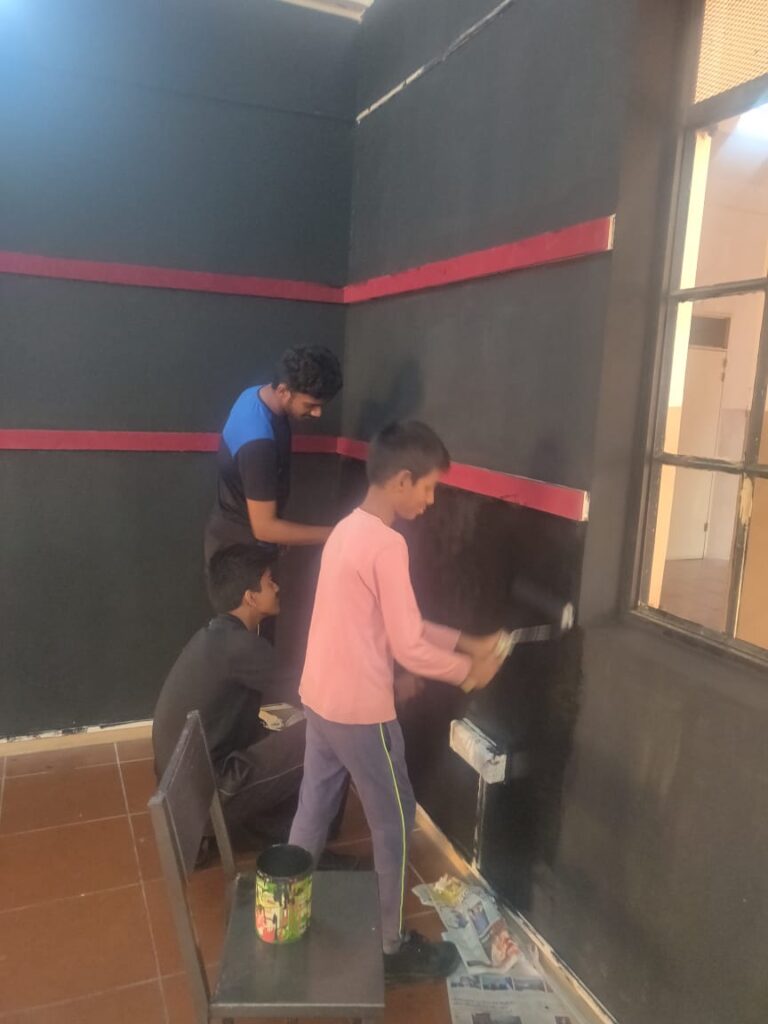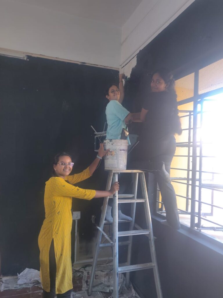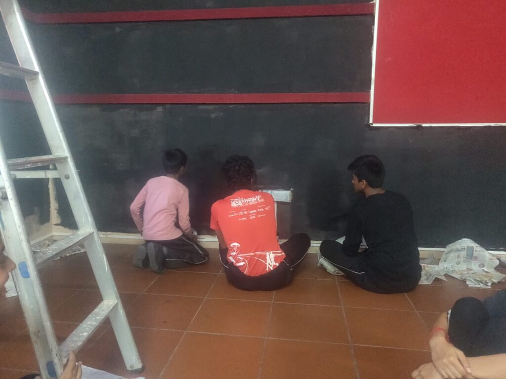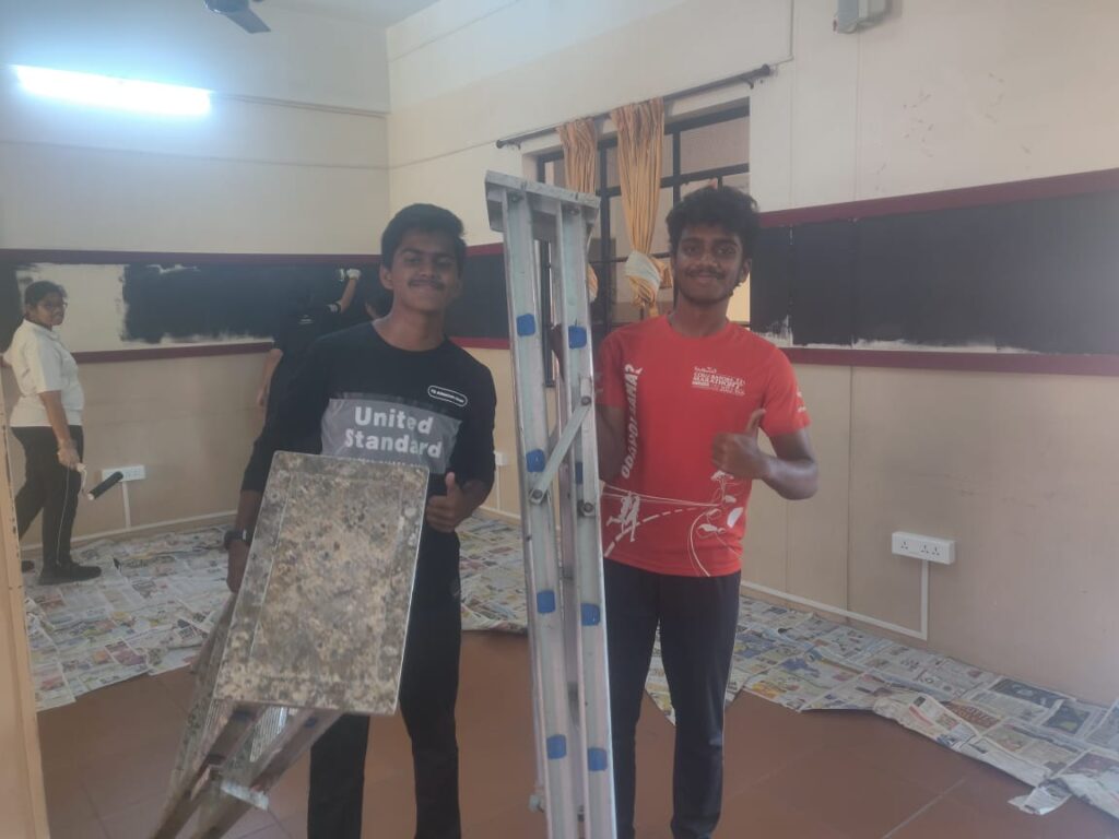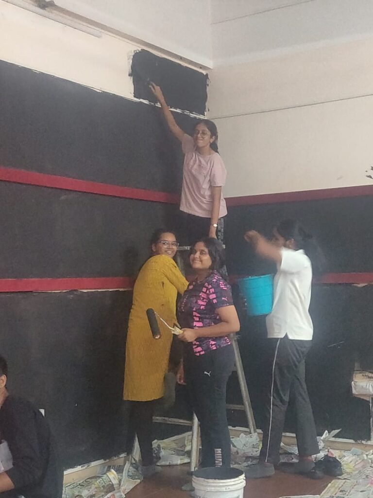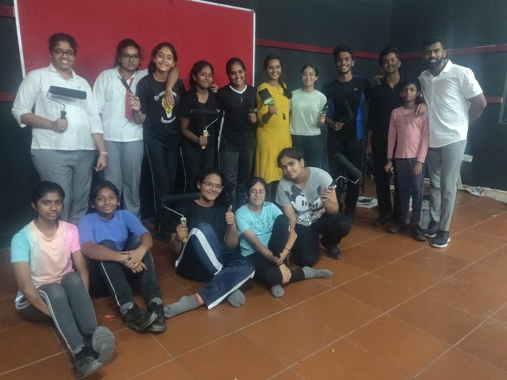 Two days of tough grind and late evening long hauls – We witnessed an uncanny finishing by the kids to the black walls. Along with the technical infrastructure supplied by Ms. Maheshwari Baskaran, Our Administrative Officer and some modest chart work, the studio was ready to be inaugurated.