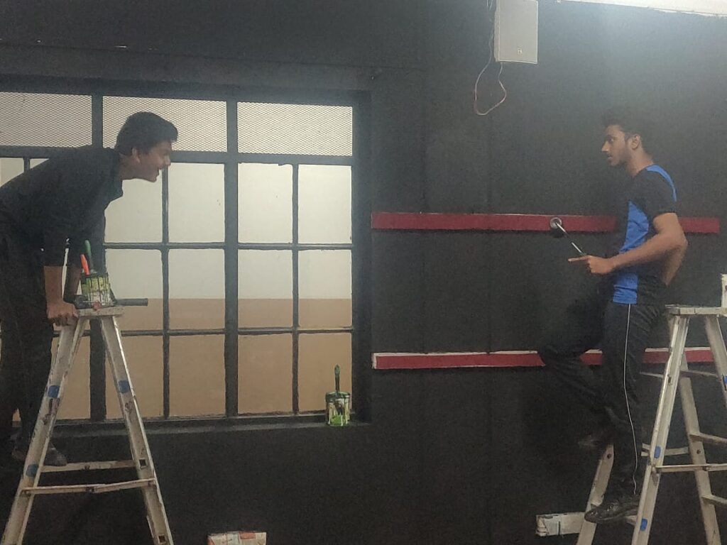 When Principal Ms. Geetha Jayachandran, actuated the task, students with the help of Mr.Anand Jeyasingh, (Head, Mass media Studies) took up the attempt to transform the given space into a full fledged Studio.