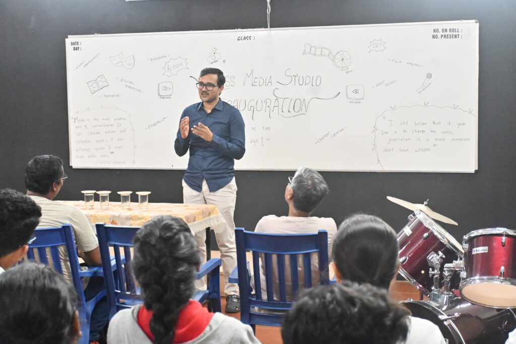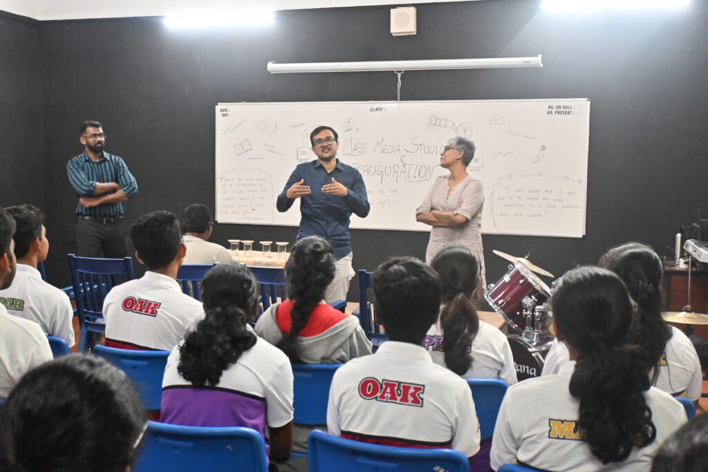 Dr. Kaushik S Hatti, Chief Data Scientist, Pinochle (Rezilyenz group) graciously inaugurated the studio on 04.10.2023 in the presence of the Principal. Dr.Hatti’s love for movies and media inspired the gathering to a great extent. Children shared their experience of how this enhanced their vocational and creative skills in the process.